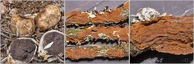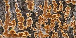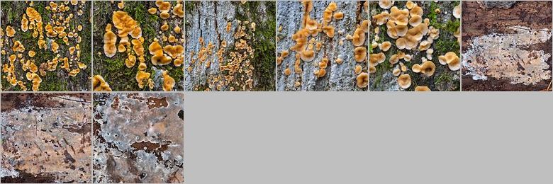 Byssomerulius corium, Mycena corticola, Psilocybe coronilla, Schizophyllum commune, Teloschistes chrysophthalmus