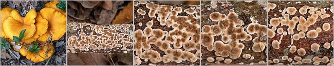 Bjerkandera adusta, Cantharellus cibarius, Hypoxylon rubiginosum, Lactarius subvernalis, Lentinus crinitus, Piptoporellus soloniensis, Scutellinia superba