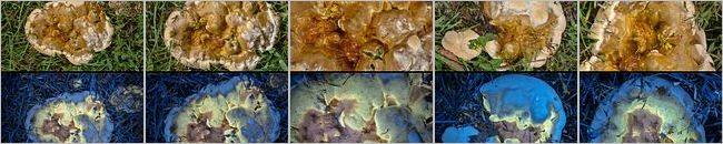 Chromosera cyanophylla, Daedaleopsis confragosa, Gymnopilus penetrans, Pholiota spumosa, Scutellinia scutellata