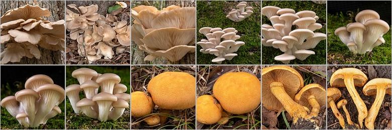 Chromosera cyanophylla, Entoloma rhodopolium, Gymnopilus junonius, Hebeloma crustuliniforme, Pleurotus ostreatus