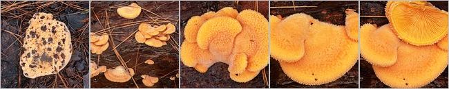 Crepidotus crocophyllus, Lycoperdon curtisii, Marasmiellus subnigricans, Oxyporus latemarginatus, Parasola plicatilis