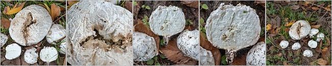 Amanita macerisolum, Bolbitius coprophilus, Chlorophyllum hortense, Leucoagaricus americanus, Leucocoprinus birnbaumii, Marasmius graminum